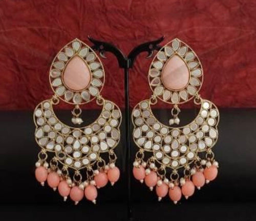 Mirror Earrings With Light Orange Beads