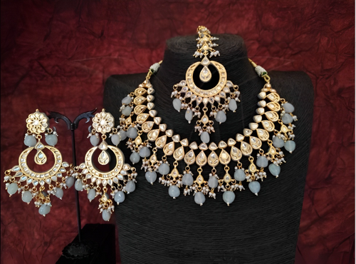 Pale Blue Kundan Necklace & Earring Set