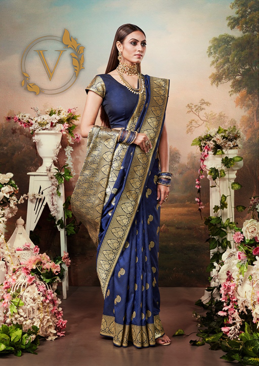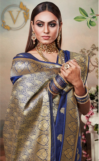 • Load image into Gallery viewer, Blue Banarasi Jacquard Saree