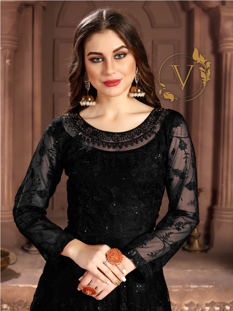 - Available with a Poly Shantoon Churidar and a Net Dupatta in Black